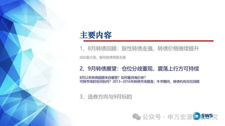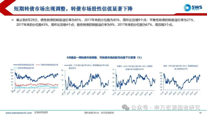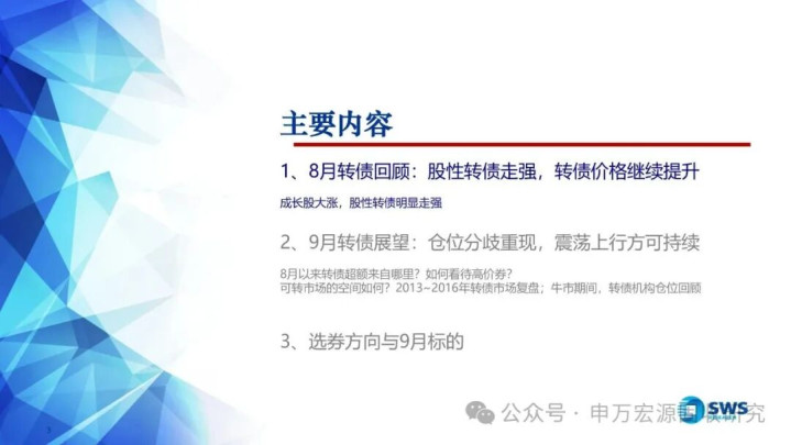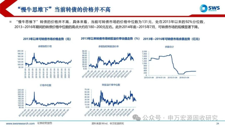 (2)“慢牛思维下”短期调整是机会。8月末市场出现震荡调整,调整后的转债市场整体估值更加健康,转债市场高位后的调整有利于行情的持续性。此外,“慢牛思维下”转债的估值与价格并不高,具体来看,当前债性转债的转股溢价率为85%,处在2013年以来的85%;平衡性转债的转股溢价率为21%,处在2013年以来的43%;股性转债的转股溢价率为9%,处在2013年以来的67%。当前可转债市场的价格中位数在130元附近,处在2013年以来的92%分位数,2013~2016年期间的转债价格中位数的高点在180~200元左右。转债市场结构性机会仍值得把握,围绕着的成长板块寻找转债中的“英伟达”与“寒武纪”,“慢牛思维下”短期调整即是机会。